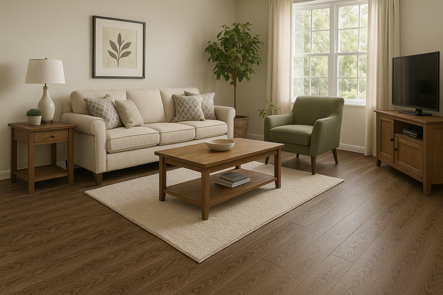 Designed to replicate the natural beauty of wood or stone, laminate is highly resistant to scratches, stains, and everyday wear, making it perfect for high-traffic areas.